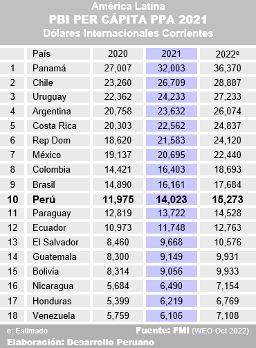 El Perú, que en el 2020 había perdido su décimo lugar a manos de Paraguay, lo recuperó en el 2021,con un dato de 14,023 DIC.